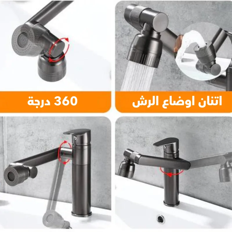 تمتع بالمرونة والأداء الفائق مع صنبورنا الدوار بزاوية 360°. يوفر لك وضعين مختلفين لتدفق الماء لتلبية جميع احتياجاتك. تصميم أنيق وعصري يضيف لمسة جمالية إلى حمامك أو مطبخك.